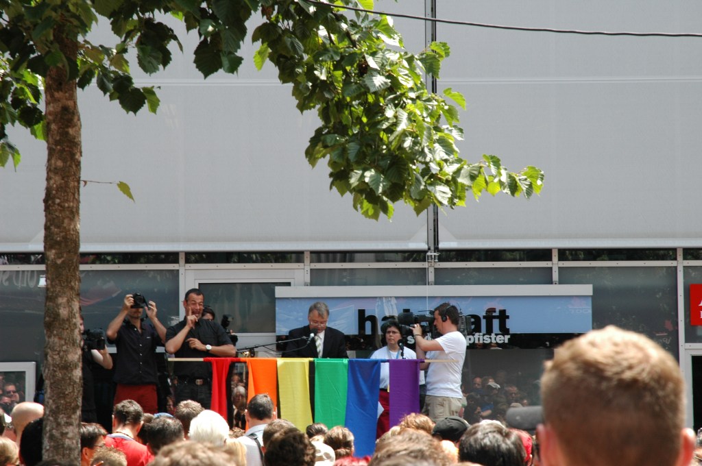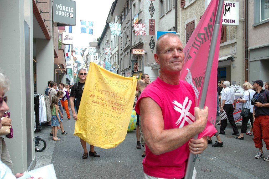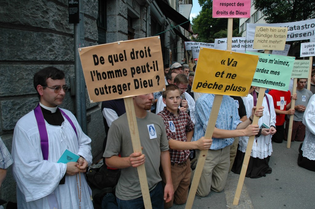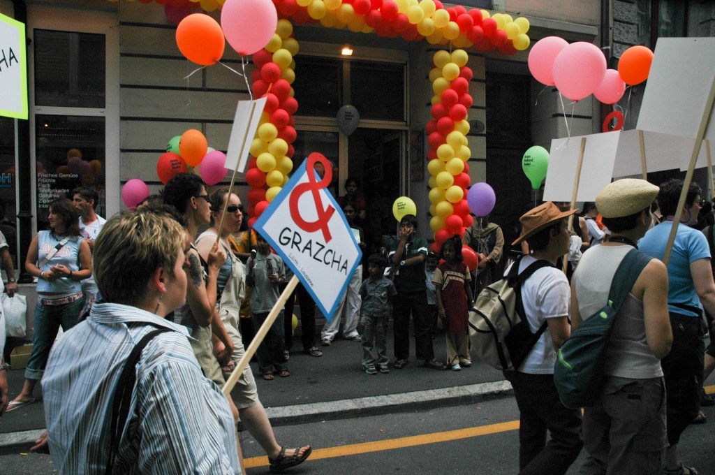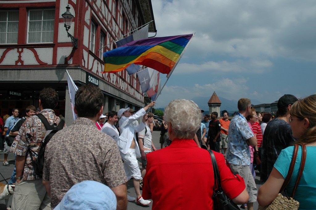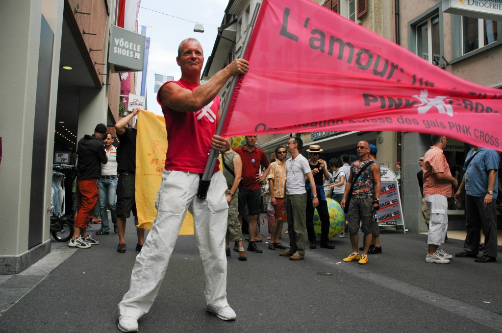 Où l’on verra les catholiques faire barrage Ce jour là, 18 juin 2005, se tenait en Suisse une Pride nationale pour fêter la votation fédérale du PACS, Les homosexuels suisses souhaitaient ainsi se donner l’occasion de fêter l’adoption de la loi sur le partenariat enregistré. https://www.rts.ch/info/toute-info/969380-la-pride-2005-sera-nationale.html